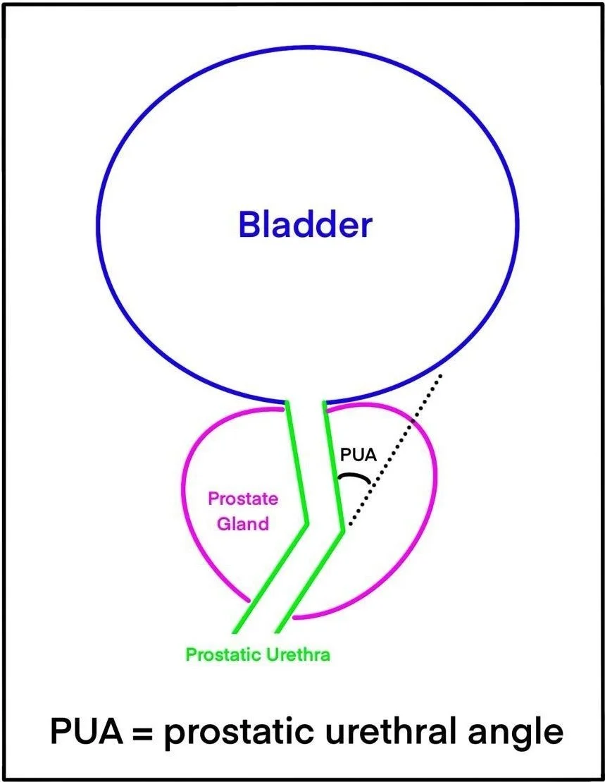 This deflection creates what’s known as the prostatic urethral angle (PUA).